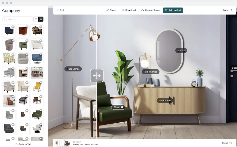 Roomvo’s furniture visualizer brings all your products to life, instantly.